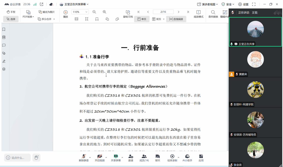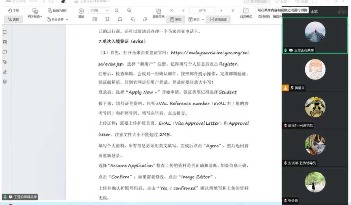 2025年2月我校学生将赴马来西亚拉曼大学进行交换学习,为扎实做好出国交换学生的行前准备工作,强化涉外安全教育,1月22日上午,国际交流处组织开展了线上赴国(境)外行前培训会。国际交流处副处长王莹、宋蔚,土木与建筑学院副院长李伟娜,网络与通信学院副院长彭丽叶,艺术与传媒学院副院长张会改,辅导员老师以及交换学生和家长代表共同参会。会议由国际交流处干事黄鹤来主持。