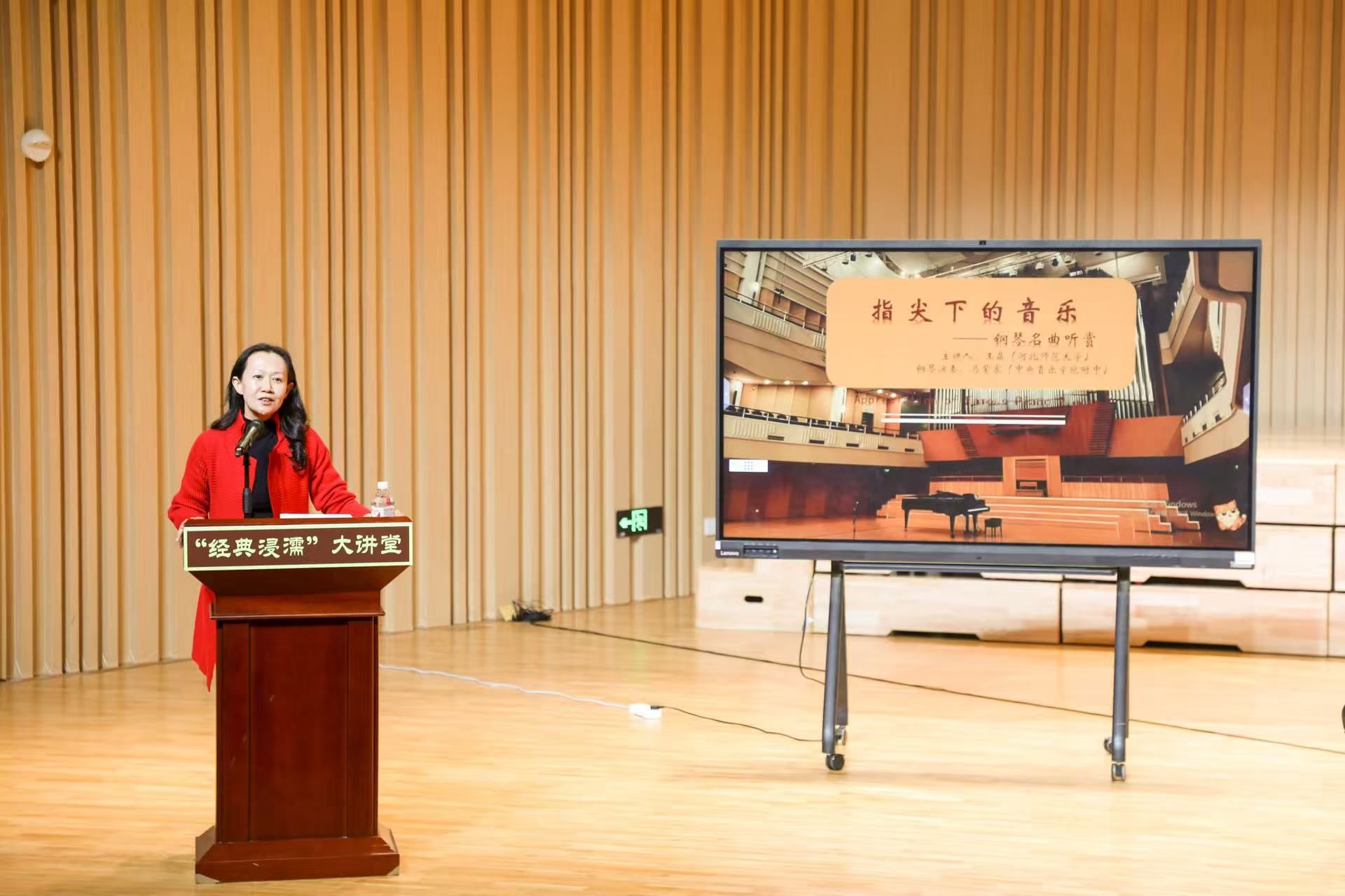 3月13日晚,艺术与传媒学院在校音乐厅举办“经典浸濡”大讲堂第五十七讲。本场以“指尖下的音乐”为主题的钢琴名曲听赏会,特邀河北师范大学音乐学院理论系副教授、硕士研究生导师王晶担任主讲。