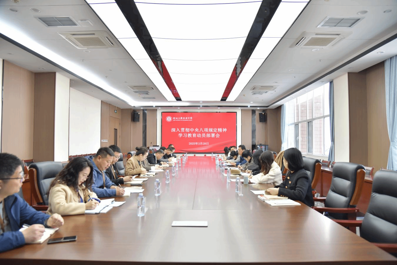 会上传达学习了习近平总书记重要讲话和重要指示精神,贯彻落实《中共中央办公厅关于在全党开展深入贯彻中央八项规定精神学习教育的通知》《中共河北省委办公厅关于在全省开展深入贯彻中央八项规定精神学习教育的工作方案》要求,深入学习中央八项规定精神以及习近平总书记围绕加强党的作风建设的系列重要论述,研究部署全校学习教育工作。