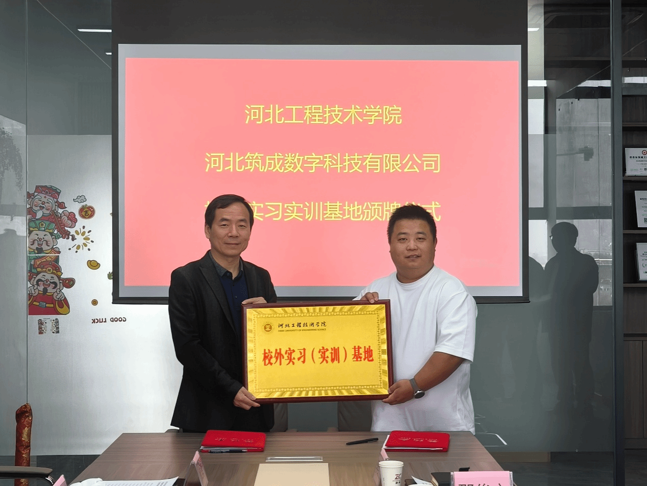 会上,学校分别与河北筑成数字科技有限公司、河北普斯汇企业管理咨询有限公司签署合作协议,并为河北筑成数字科技有限公司颁发校外实习实训基地牌匾。