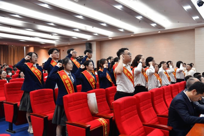 宣讲团教师代表单慧枝带领宣讲团庄严宣誓