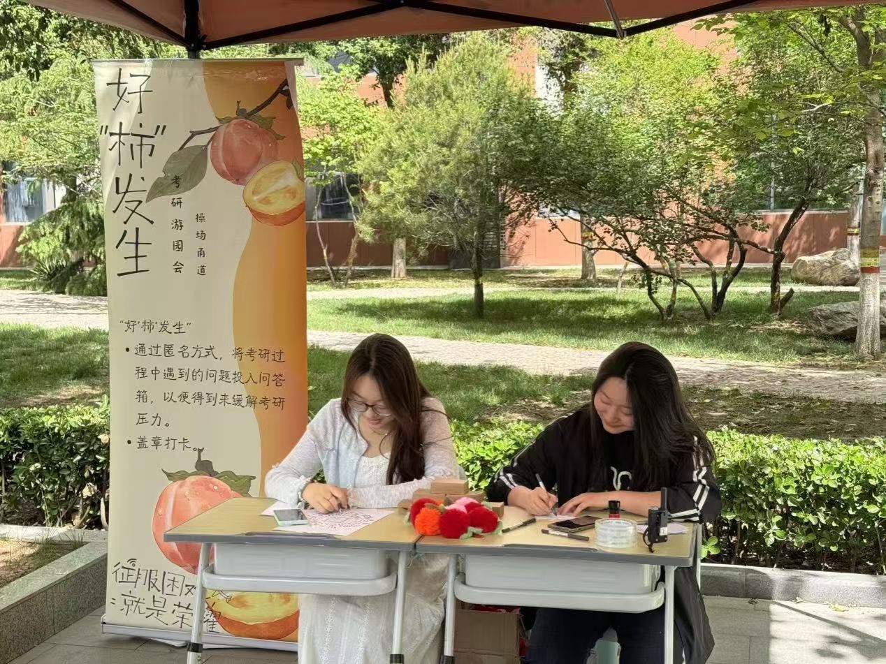 本次活动设置“橙意满满”“笔端寄情”“上岸补给”等6个特色活动,参与者通过趣味环节,深入了解自身兴趣与职业发展方向,现场还设有考研咨询,有效帮助学生打破考研信息壁垒,拓宽选择的空间。副校长刘喜贵深入活动专区参与互动,并在与学子交流中了解其备考难点,他强调要建立考研帮扶长效机制,将学生诉求转化为精准服务。
