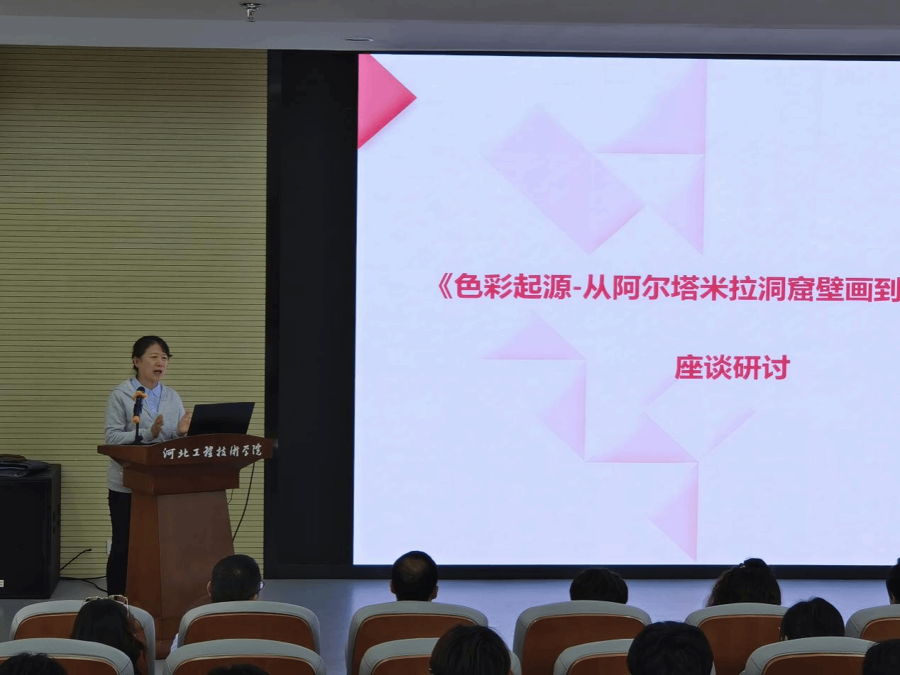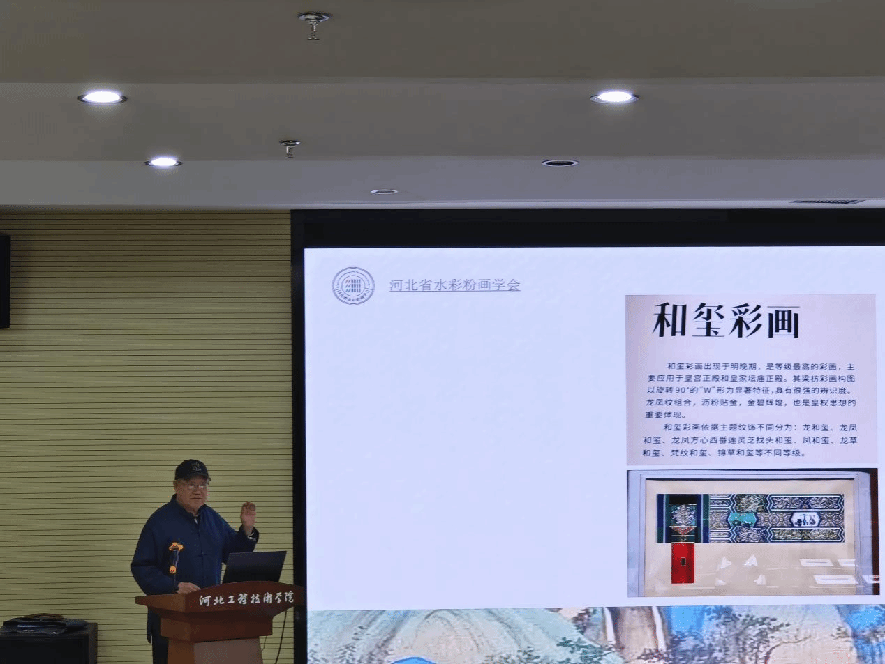 学术交流环节中,河北省水彩粉画学会秘书长富小亮系统汇报了学会在矿物颜料标准化研制、非遗技艺保护等方面的工作开展情况。他强调,积极发挥高校和企业合力,推动河北特色文化IP开发。各专家学者基于研究领域和专业背景,围绕传统材料现代转化进行探讨,并提出构建“京津冀产学研用融合创新平台”、搭建“高校-学会-企业”协同创新平台等建设性意见。我校风貌建设管委会办公室主任谷雨结合学校美育教育提出了创建“河工岩彩工匠坊”和“文创店”的设想。
