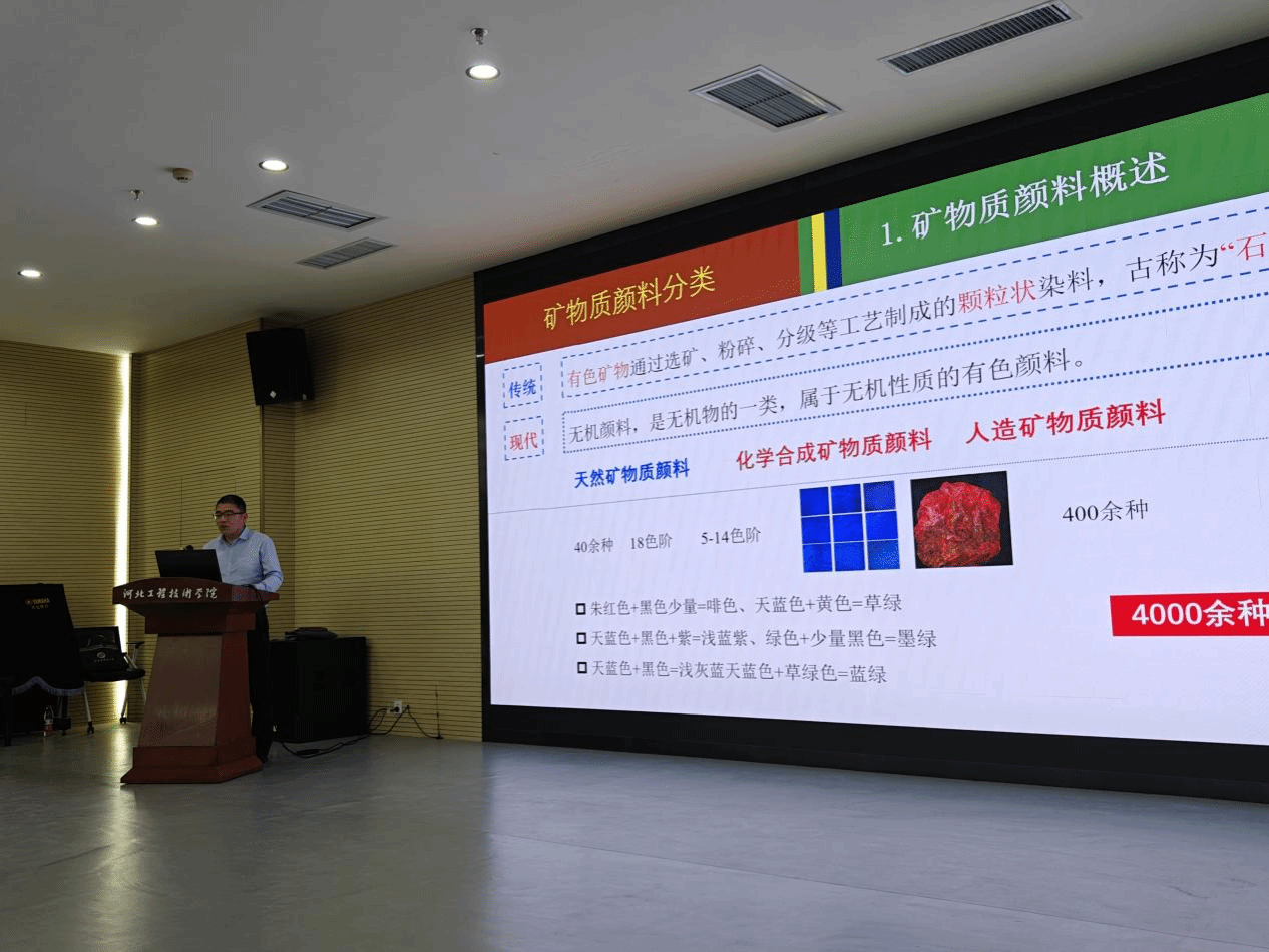 学术报告环节汇聚了多领域专家,以跨学科视角展开深度对话:河北师范大学关尚卿教授通过壁画修复案例,解析矿物颜料在中国传统艺术中的文化密码;中国戏曲学院李莘教授梳理矿物颜料的全球发展脉络,带领大家探寻色彩起源;石家庄铁道大学王志博士从材料科学角度,揭示矿物颜料理化特性与艺术表达的科技关联。三位专家以兼具学术深度与大众传播性的演讲,引发与会人员关于传统材料现代转化的热烈讨论。
