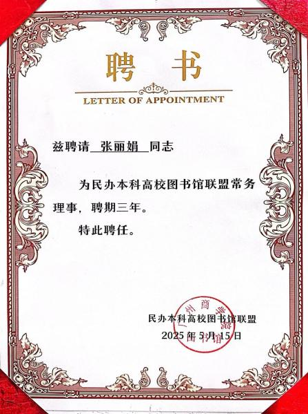 本次大会汇聚了全国百余所民办本科高校的代表,共同见证了民办本科高等学校图书馆联盟的正式成立。大会选举产生39位常务理事、9位副理事长,我校图书馆成功当选全国民办本科高等学校图书馆联盟常务理事馆,馆长张丽娟荣任首届联盟常务理事。