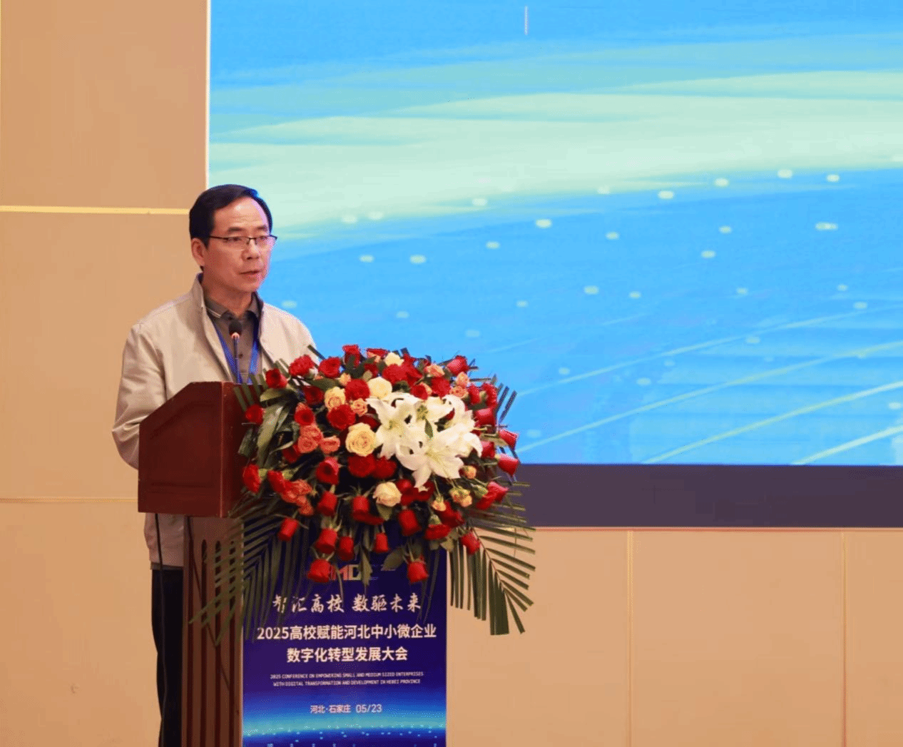 5月23日,由我校主办,河北省民营经济发展促进中心、京津冀国家技术创新中心河北中心、河北省科学院应用数学研究所、河北省机电一体化中试基地有限公司、河北省海内外名人名企交流协会、河北省村镇经济发展促进会、河北省文化和旅游产业协会、石家庄市营养师协会等十余家单位联合协办的“智汇高校,数驱未来——2025高校赋能河北中小微企业数字化转型发展大会”在石家庄举行。大会由科研与产教融合处副处长王俊昆主持,来自全省高校、行业协会、数字化转型服务商及中小微企业的近200名代表参会,共同探讨数字化转型发展新路径,助力企业高质量发展。