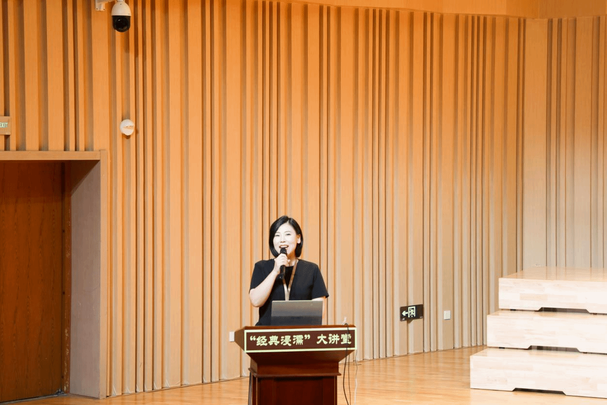 主讲人尹伽沅以汉字解构为切入点,通过趣味问答引导学生思考戏剧本质。在讲解戏剧排演流程时,尹伽沅以“构建艺术大厦”作比,指出剧本是基石需兼顾艺术与市场,导演如钢筋把控全局,演员要与角色气质契合,重点解析了排练流程。