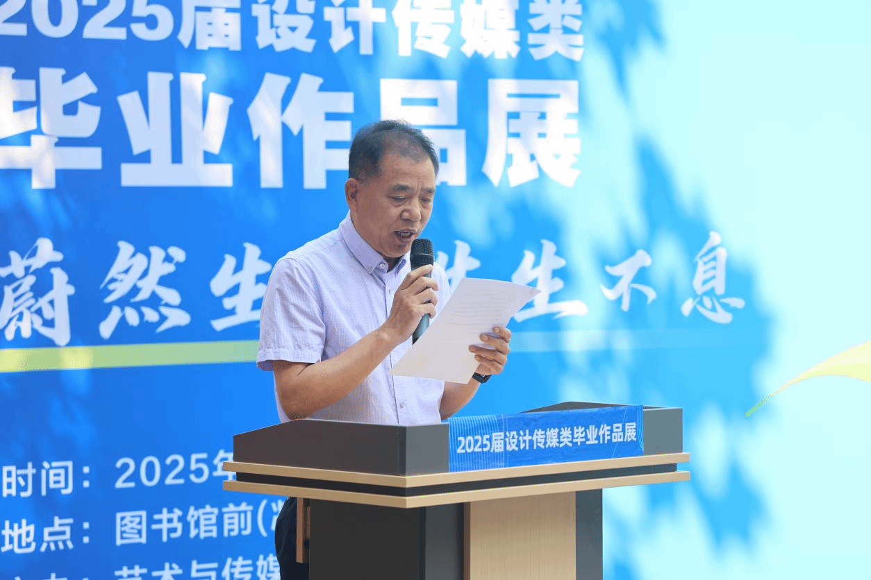 副校长姜新佩为开幕式致辞,他指出,学校坚持应用型人才培养定位,艺术与传媒学院积极创新教学模式,注重理论与实践的深度融合,本次毕业展既是学院育人成果的集中体现,更是学校应用型人才培养成效的有力证明。