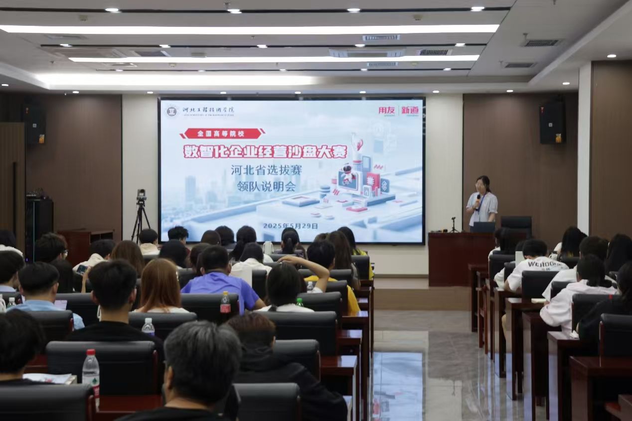 5月30日,由河北省教育厅主办的第二十一届全国高等院校数智化企业经营沙盘大赛河北省选拔赛在我校举办,吸引了全省34所院校64支队伍256名学生参赛。