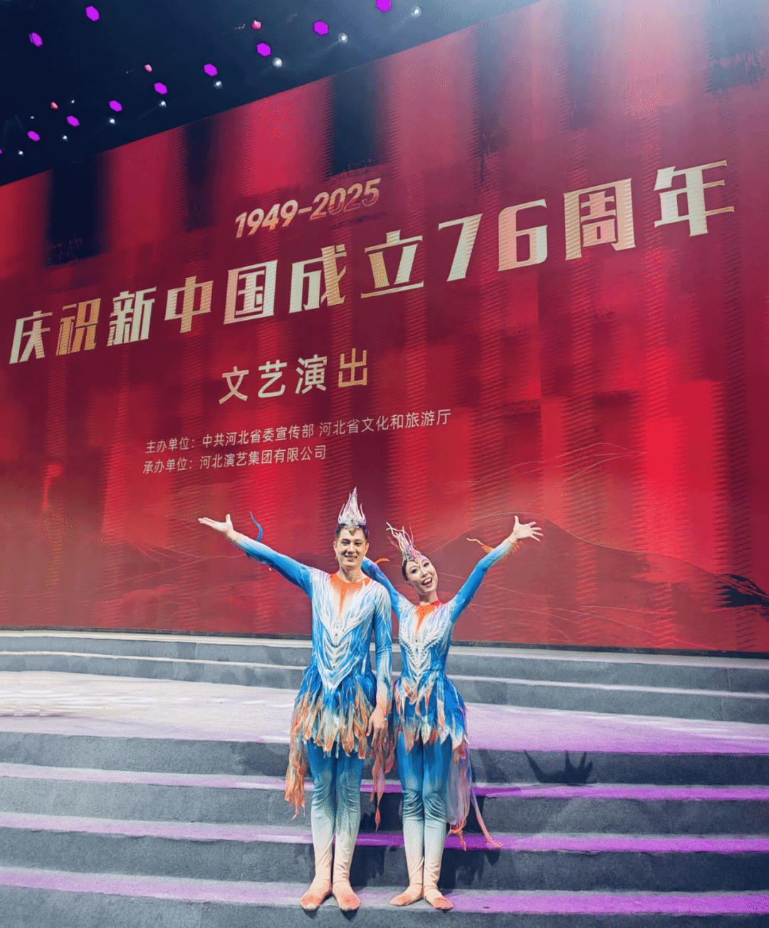 日前,由中共河北省委宣传部、河北省文化和旅游厅主办,河北演艺集团有限公司承办的河北省庆祝中华人民共和国成立76周年文艺演出在河北省艺术中心举行。我校艺术与传媒学院声乐歌剧系教师王一硕,舞蹈系教师蔡旭日、孙乐及60名舞蹈系学生受邀参演,精彩呈现《今天是你的生日》《千年梦回》《光阴画廊》《芦花飞扬》等歌舞节目。