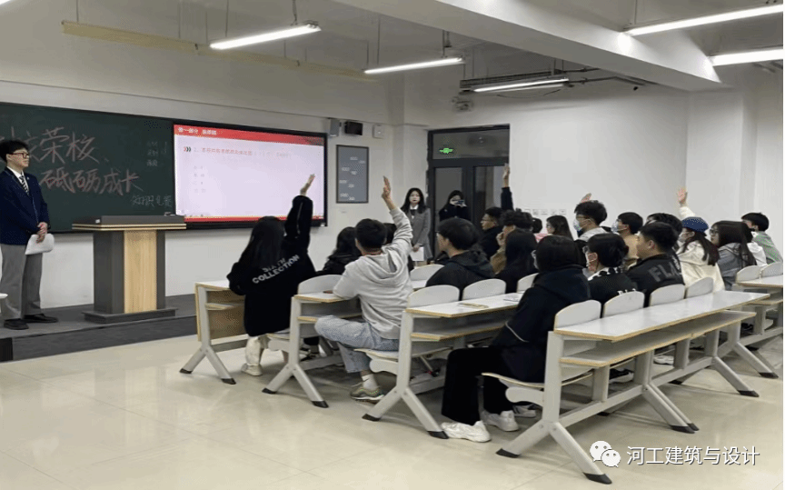 建筑与设计学院社团联合会于2023年3月24日下午18:00分别在主教418和407举办“爱校荣校,砥砺成长”知识竞赛活动,比赛分为初赛和决赛两个阶段,决赛在418举行。