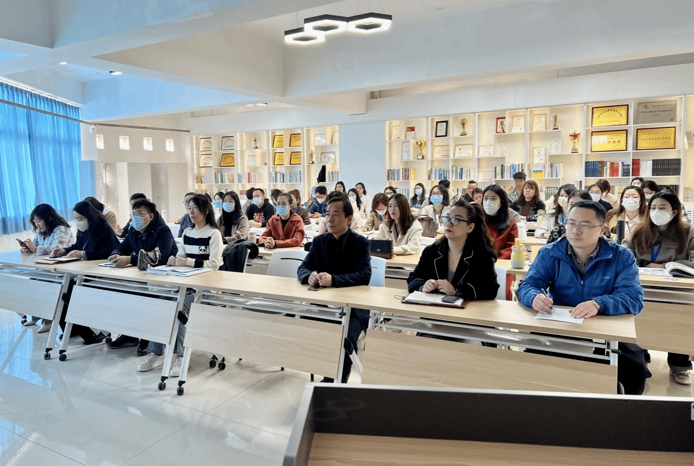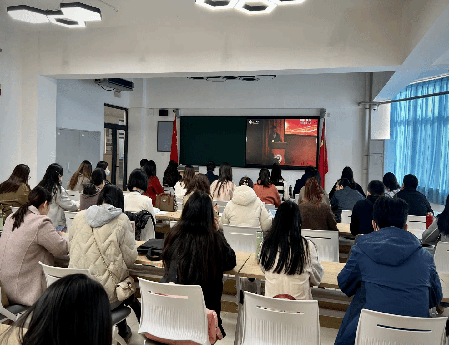 全体教师先后学习了天津大学在课程思政理念学习贯彻、人才培养体系、专业建设、课程建设等方面系统的经验和做法。天津大学从课程思政自然而然和润物无声的基本特征落脚,以习近平新时代中国特色社会主义思想、习近平关于教育的重要论述、习近平关于立德树人的重要论述为根本遵循,用好课堂教学这个主渠道,探索课程思政、专业思政、学科思政的体系建设,初步形成了一条切实有效的实践路径。在实践中,其以挖掘课程思政元素、有机融入课堂教学、育人者先受教育为基本功,把着眼点和着力点放在回归课程思政的本意,从课程、专业、到整个育人体系,再从教师、系、学院、到学校,打造系统的课程思政!严谨的思维,求实的作风,丰富的内容,深深的吸引了在场的每一位老师。
