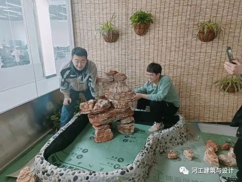 2023年3月17日,走进河工实训楼,在风景园林专业实验室内的师生难掩喜悦和激动的心情,以热烈的掌声庆祝建筑与设计学院风景园林专业“室内景观水池施工”开放性实验的圆满完成。