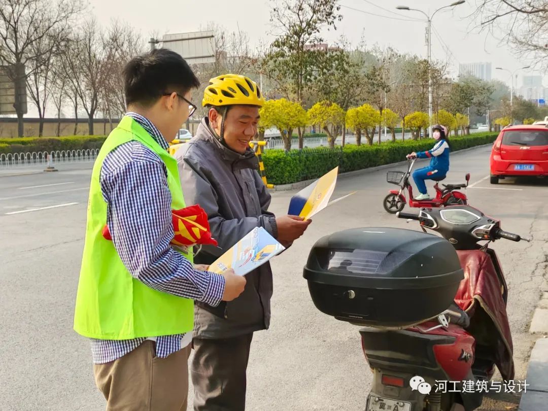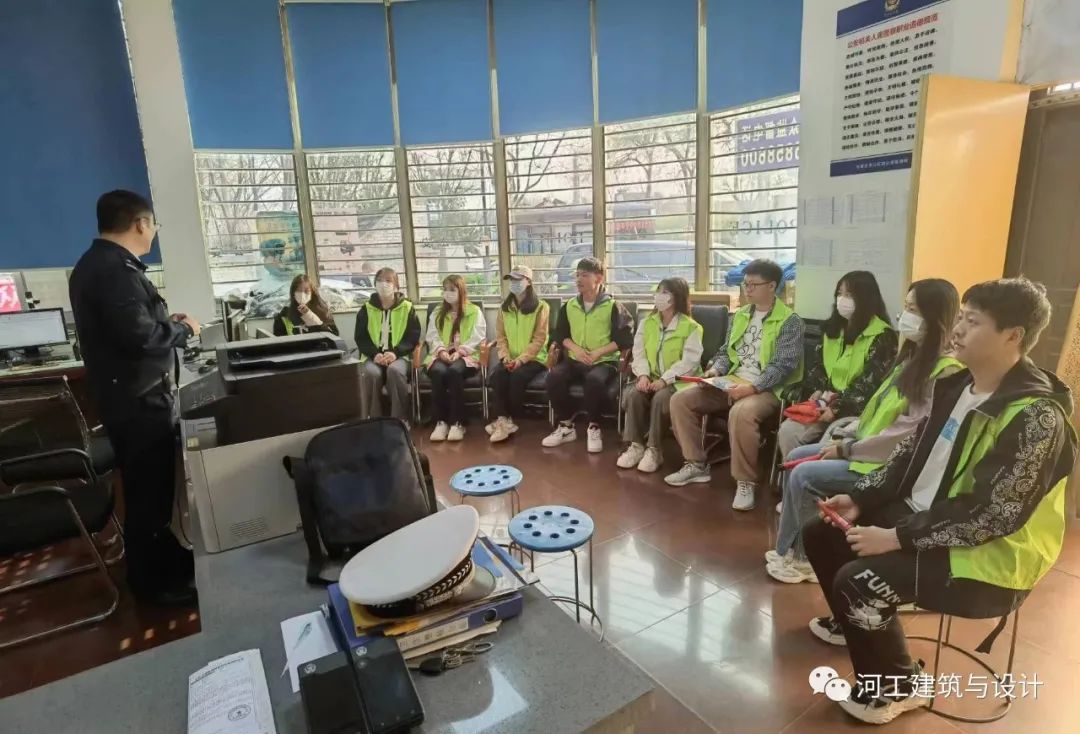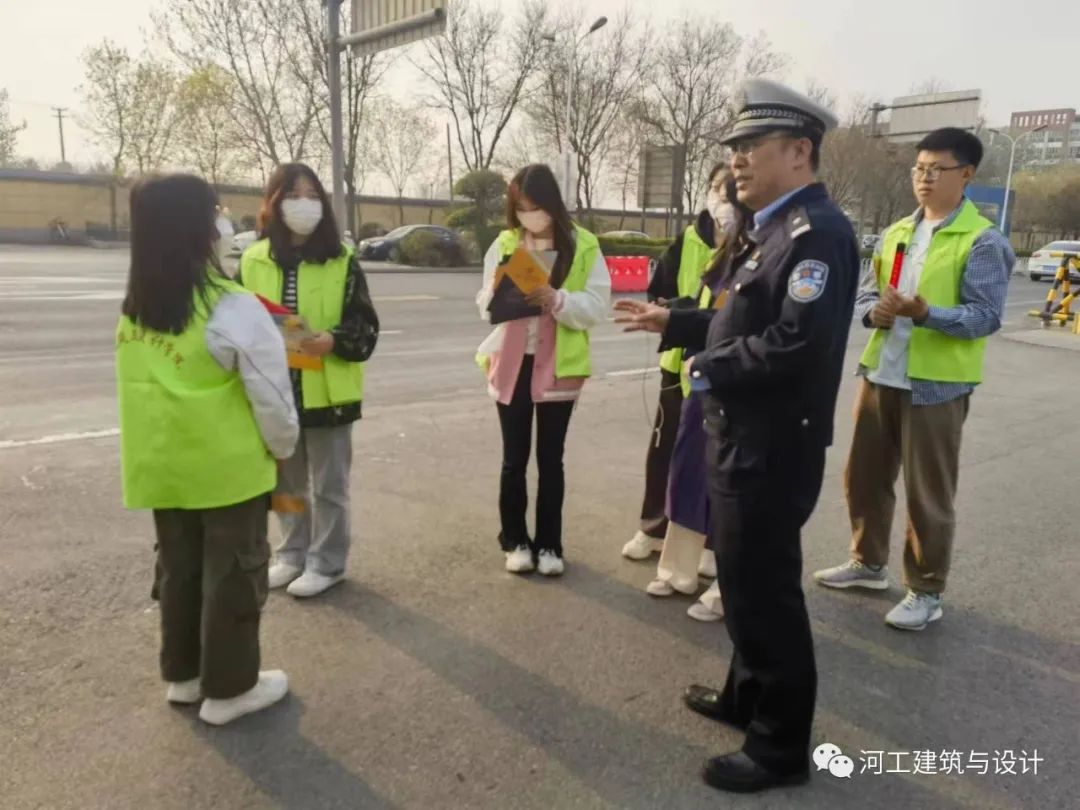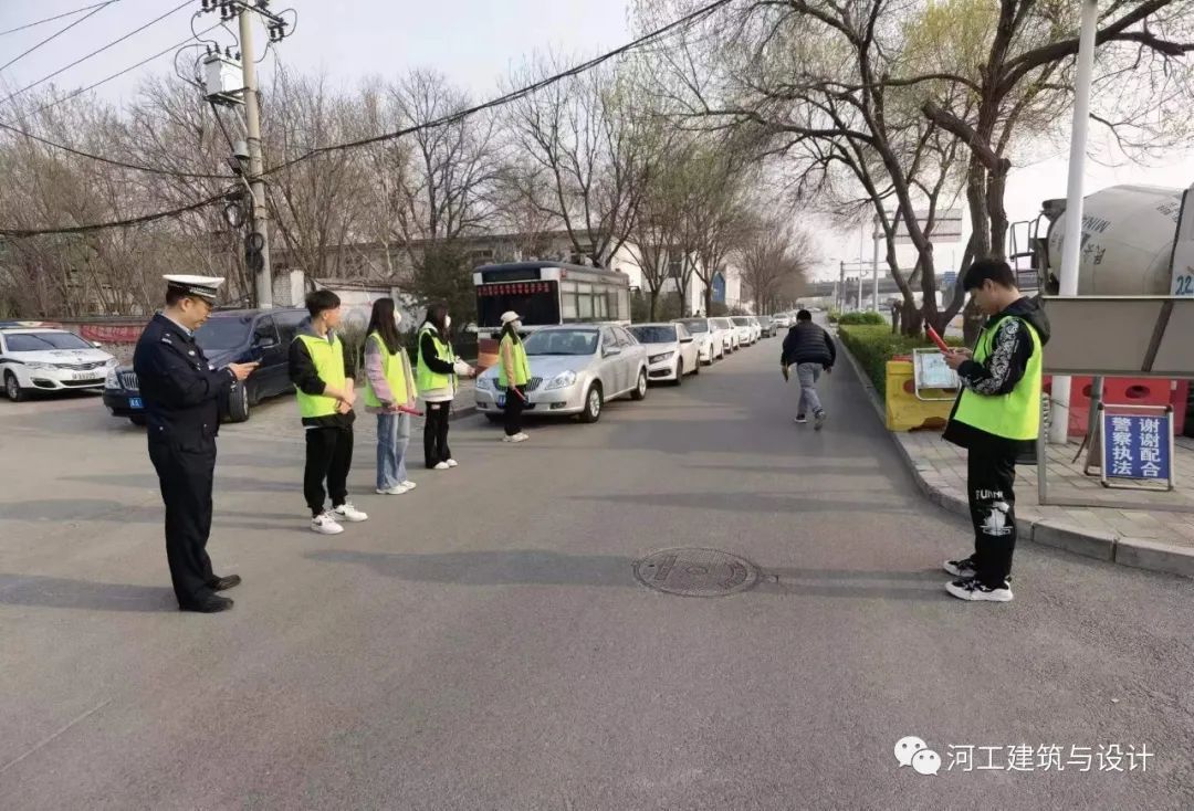 为进一步呼吁广大市民规则出行,2023年3月28日下午4点,文明交通志愿者们身穿印有建筑与设计学院标志的马甲,由青协负责人徐帅带队,步行至桥西区红旗大街南综合警务室协助交警进行交通秩序整治及宣传活动。