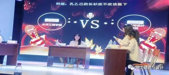 辩论赛--其核心就是一个“辩”字,将其拆解,分为中间一个“言”字,两边各一个“辛”字,就是势均力敌的双方辩手,会凭借各自的思维能力和相关知识,就某一问题进行辩论的一种竞赛活动。为了让同学们深刻理解“辩”字的内涵,体会中国汉字的妙义;为了提高同学们的思维反应能力,语言表达能力,综合运用能力;为了培养同学们的团队协作和创新意识,展现青春风采和时代风尚。特此,我校大学生反邪教协会联和校大学生广播台于2023年4月13日18:30顺利举行了“辩以载道”辩论大赛决赛,建筑与设计学院对阵土木工程学院,论题为“孔乙己的长衫应不应该脱下”。