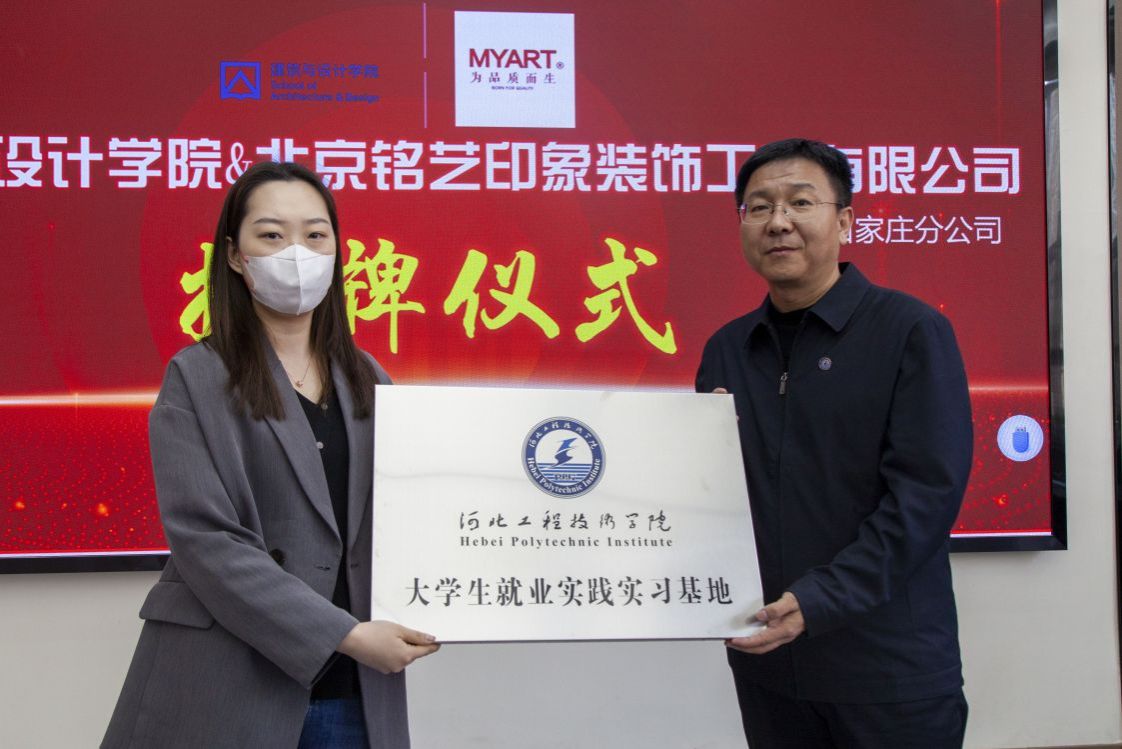 建筑与设计学院院长武勇为河北乐上名都装饰设计有限公司授牌