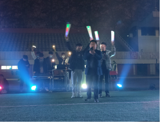 随着操场上一盏盏灯的熄灭,我们的晚会在吉他旋律中结束了,但是寒冷的夜无法阻挡我们内心的火热。我们用挥舞的手臂和热烈的呼喊,在这茫茫夜色,想让青春的肆意无畏冲破天穹,欢快或许稍纵即逝,带给我们的回忆终生难忘的。疫情封校,清晨我们可以矗立在教室的窗户边,看天边渐明,聊未来期许;傍晚,我们可以走在红色跑道上,看夕阳西下,聊光明前途。